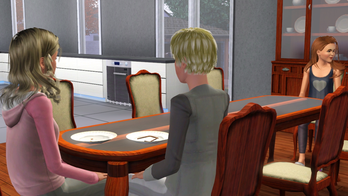 One by one, subdued, the other members of the family trickled down to the kitchen table in the morning, grabbing their morning repast in silence.