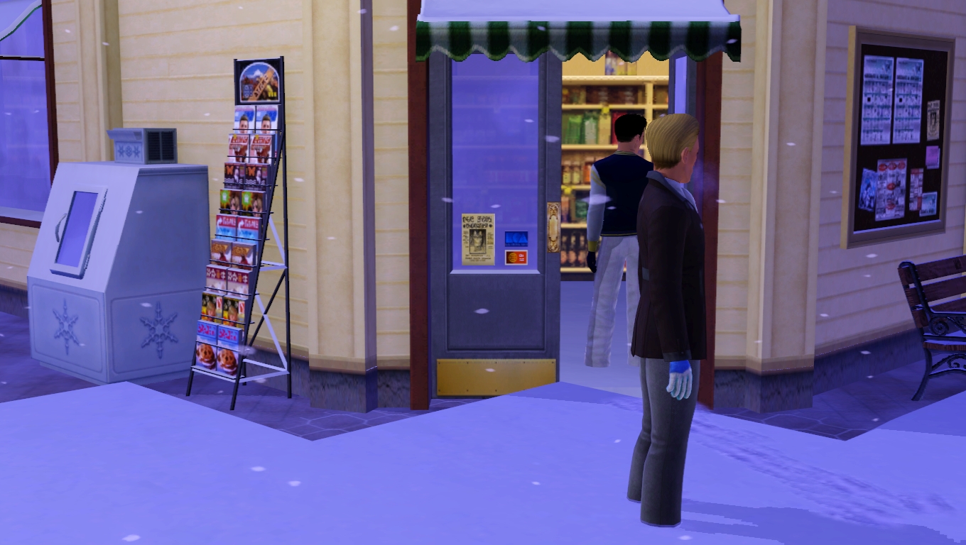 He realized that he didn't have meat for dinner...so he headed off to the store to buy some more. He took the Magarite Vaguester out this time, as it had winter tires. He'd have to get some winter tires for the Aventador; but besides, it was meant to be a summer car; really. It wasn't meant for snow. Tossing down §1499.00 for 100 steaks was no biggie for Haruo and he proceeded to make the sims there absolutely envious as they had to take all this meat out to the car. He would plant some meat so that they could grow their own. The less they had to go out the better; it was nice to be self-sufficient.